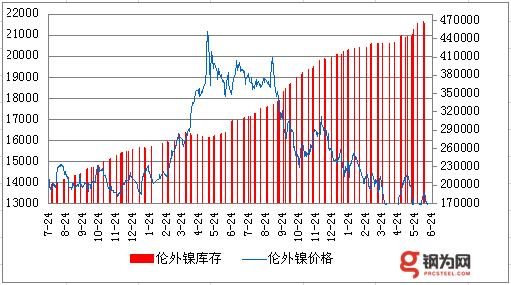 6月24日LME電鎳收12740跌110,庫(kù)存增750至459438噸,電銅漲18收5770,滬期鎳1509收96390漲1540。